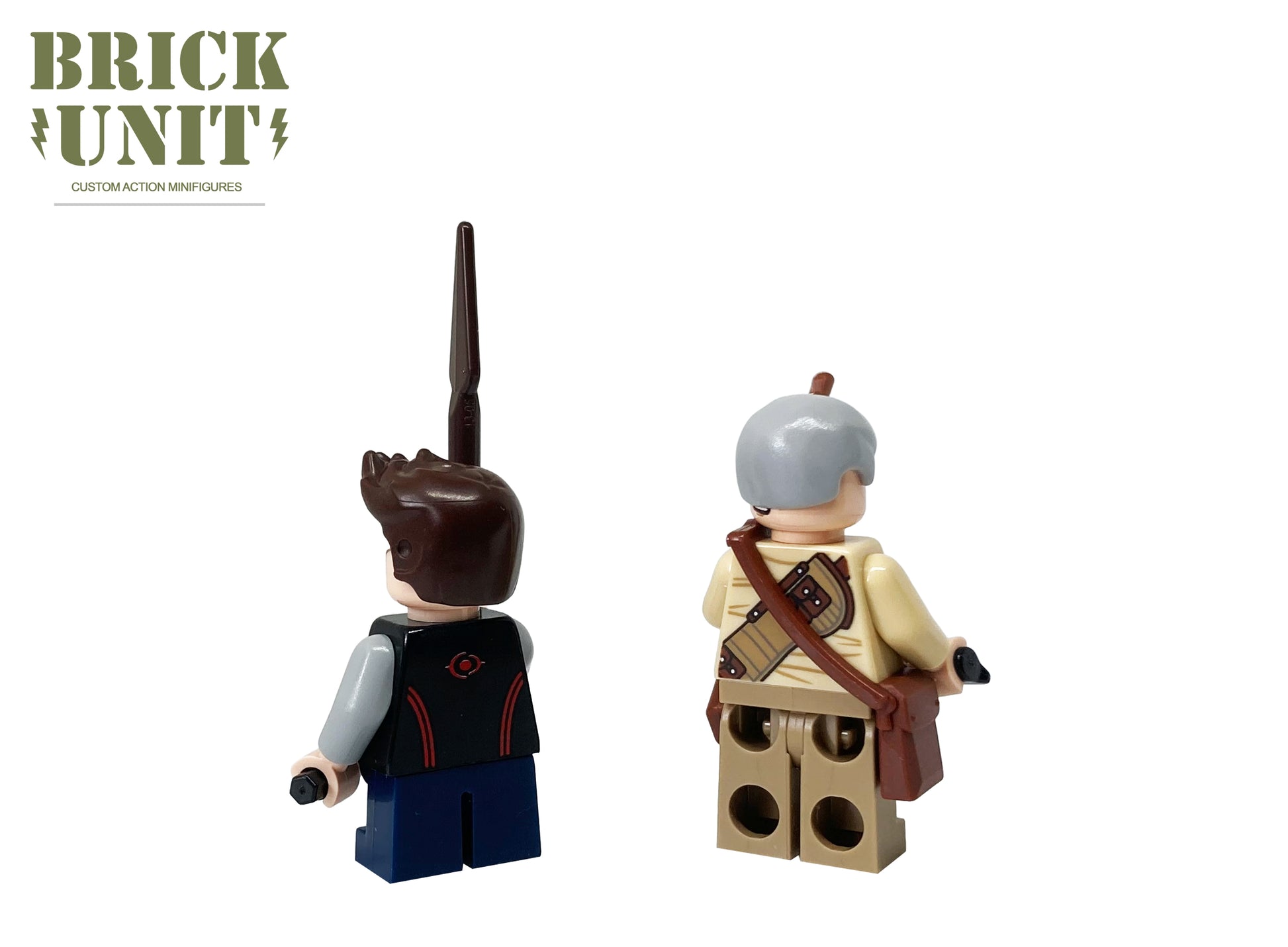 Grandpa zombie hunter : 1x custom minifigure with hairpiece,dual side printed head,satchel bag,Lebel rifle,machete.
